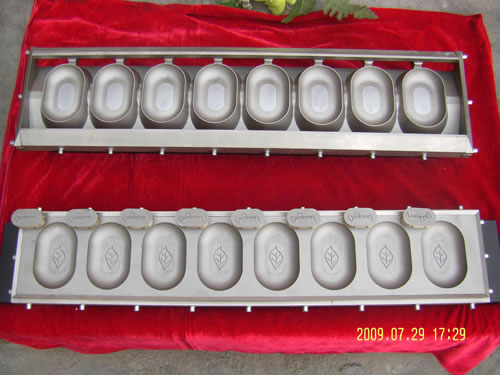 Soap dies are the soap molds used in soap stamping machines. Our soap stamping dies are made of superior quality materials. Cavities of the dies are made of No. 94 copper. The bottom plate is made of hard aluminum alloy (LC9). We are producing the soap molds suitable for existing old or new soap stamping machines of various types. Our soap dies are suitable for molding various types of soaps.